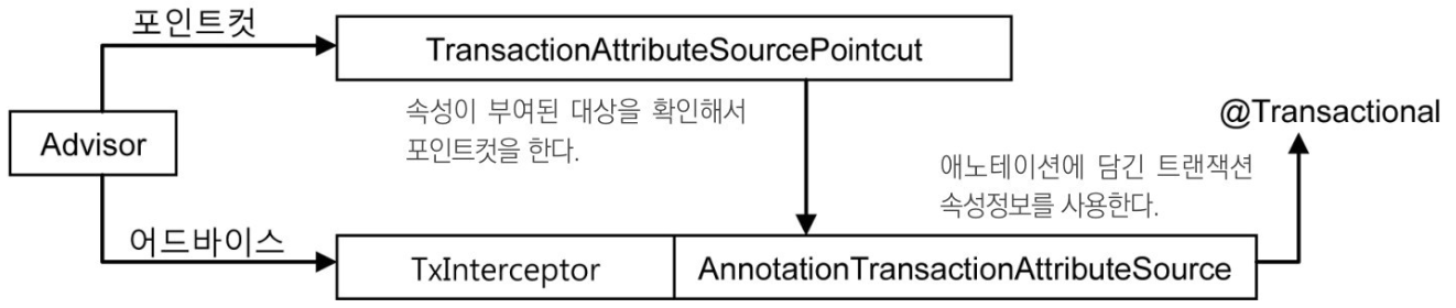 - 이때 사용되는 포인트컷은 TransactionAttributeSourcePointcut
